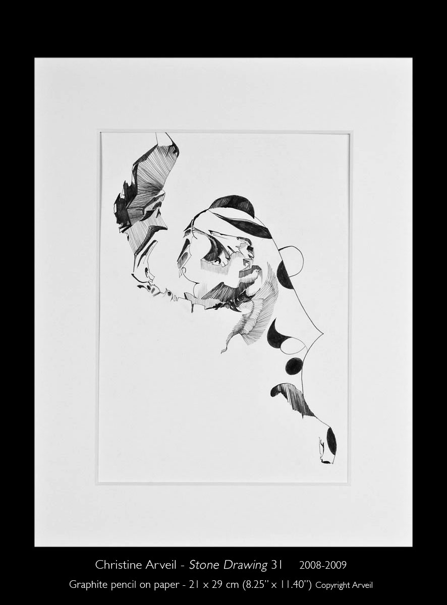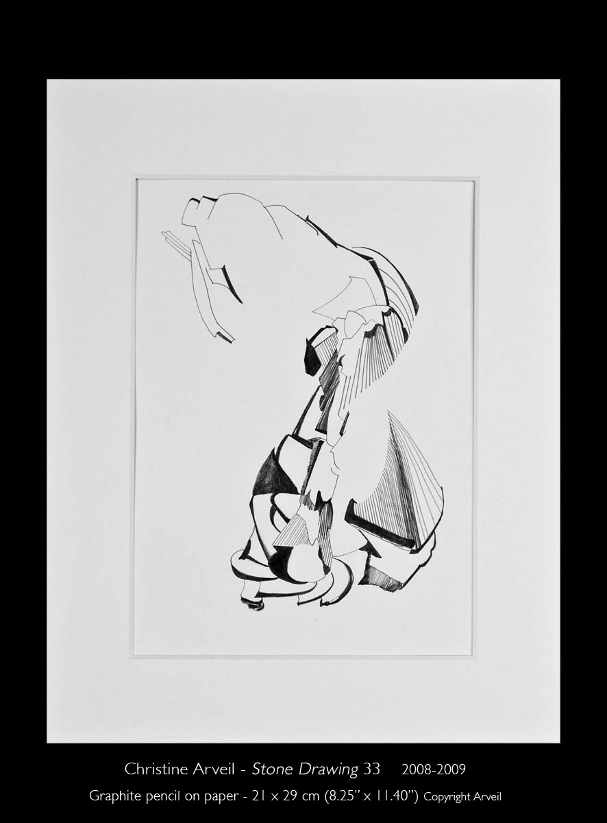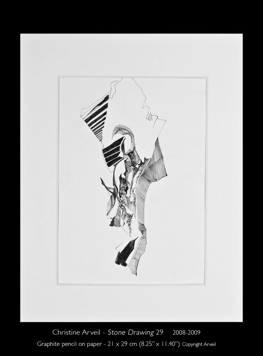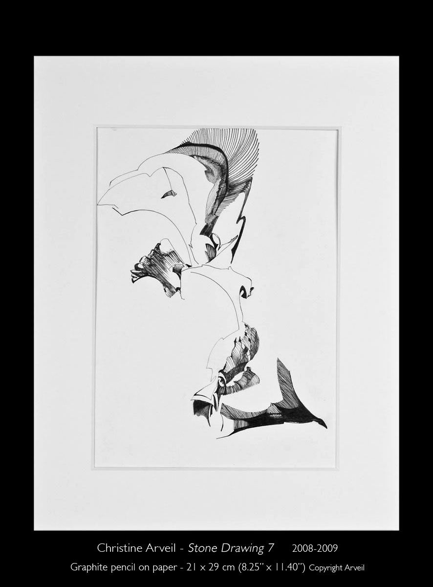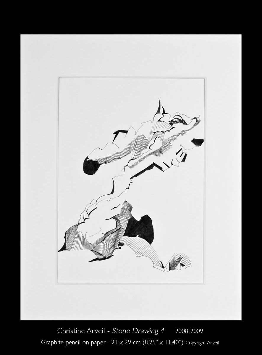 “Each drawing, involving several hours of intensely focused observation, is an exacting representation of a detail of the stone that caught my sight. At every moment, the light shifts, or the movement of the eye modifies the perception. Constantly noticing new details as one is represented, the experience descends into fractal geography. At that level of precision, the exact rendering of the whole stone becomes impossible, and the pursuit hallucinating.”