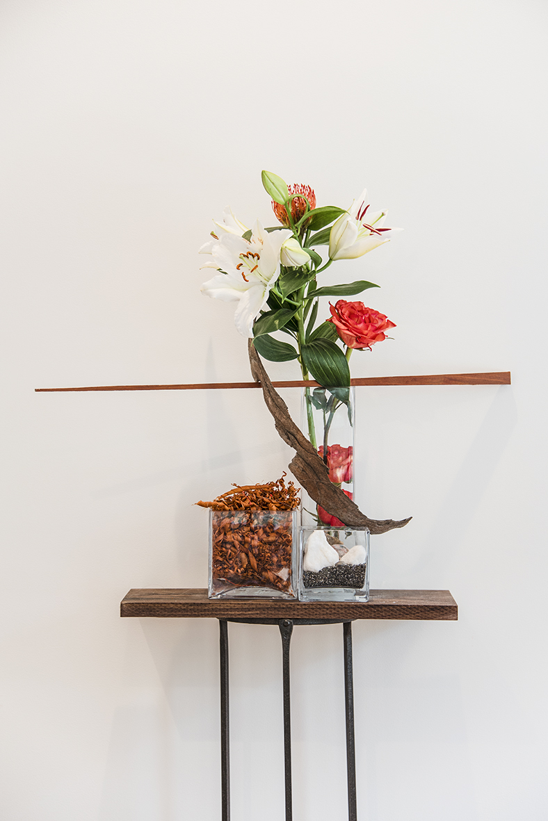 one installation— is it sculptural, ikebana, a meditation on the silk and spice roads, all of