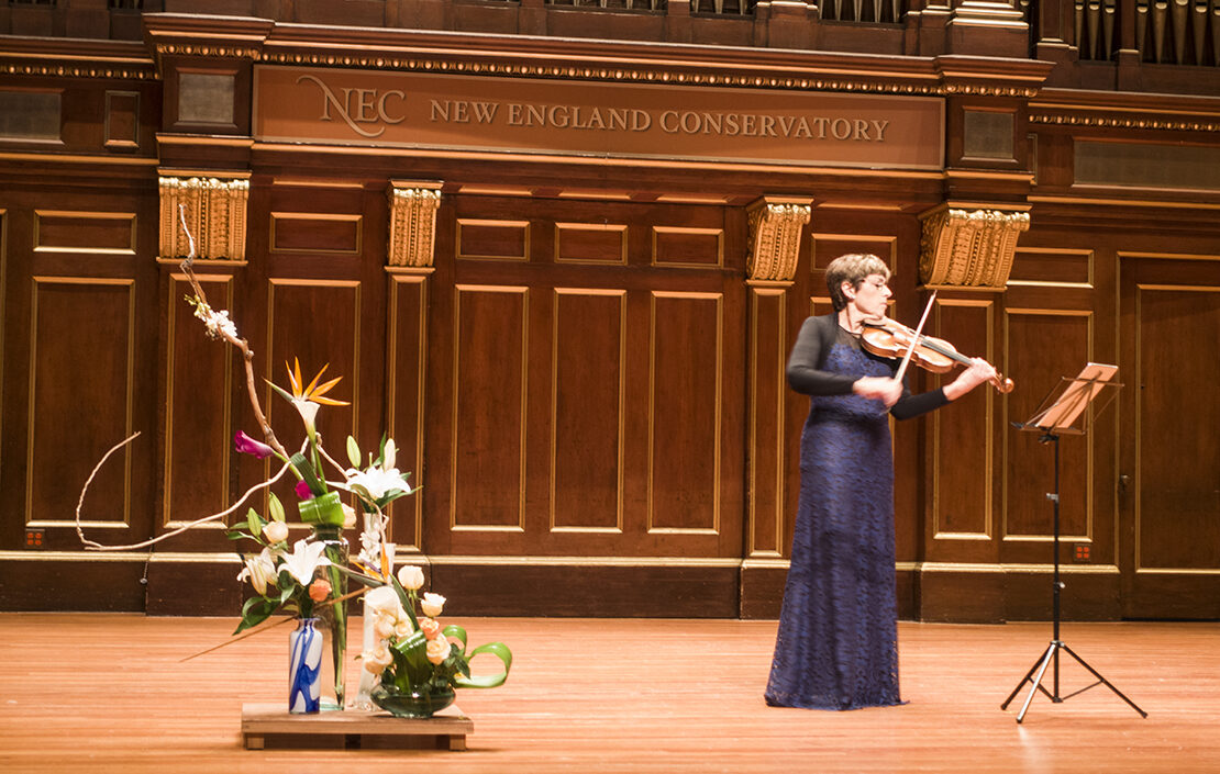 “The stage was bare except for a single wire music stand on which rested a tablet computer and an exotic, zen flower structure. The spiky, swirly shapes of the foliage constituted a visual counterpoint to the swirls of the music—simple, yet complicated. “